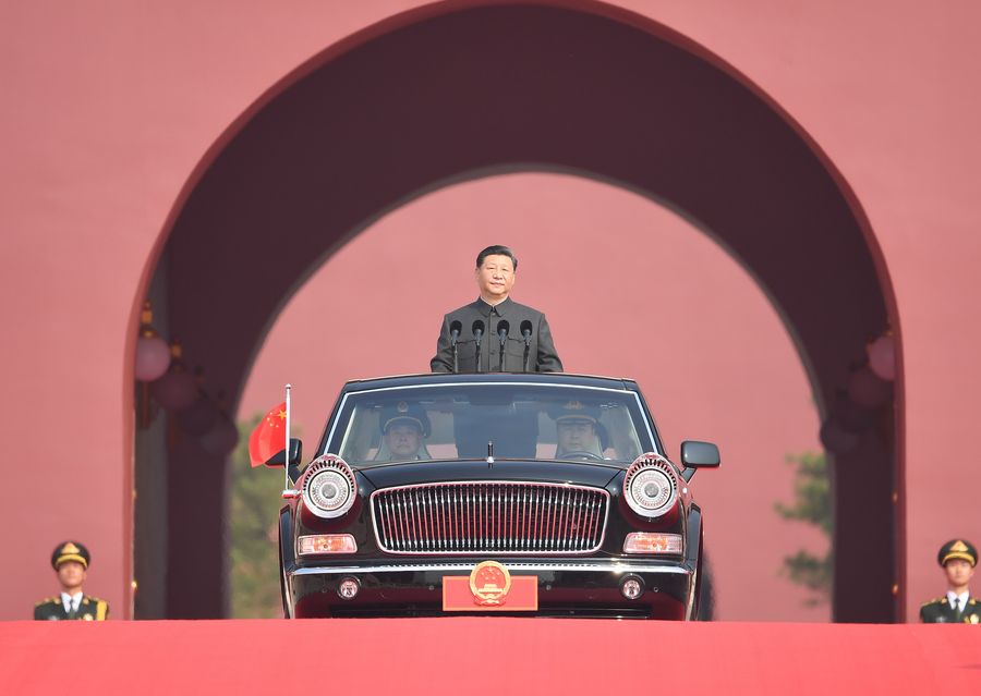 Chinese President Xi Jinping, also general secretary of the Communist Party of China (CPC) Central Committee and chairman of the Central Military Commission, reviews the armed forces during the celebrations for the 70th anniversary of the founding of the People's Republic of China (PRC) in Beijing, capital of China, Oct. 1, 2019. (Xinhua/Li Xueren)