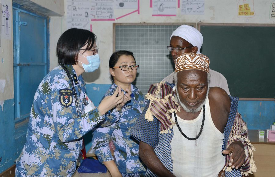 Doctors of Chinese hospital ship Peace Ark provide free medical services to local people in Doraleh, Djibouti, on Aug. 25, 2017. The Peace Ark arrived in Djibouti on Aug. 23 and was expected to carry out a nine-day medical service in Djibouti. (Xinhua/Wang Shoubao)