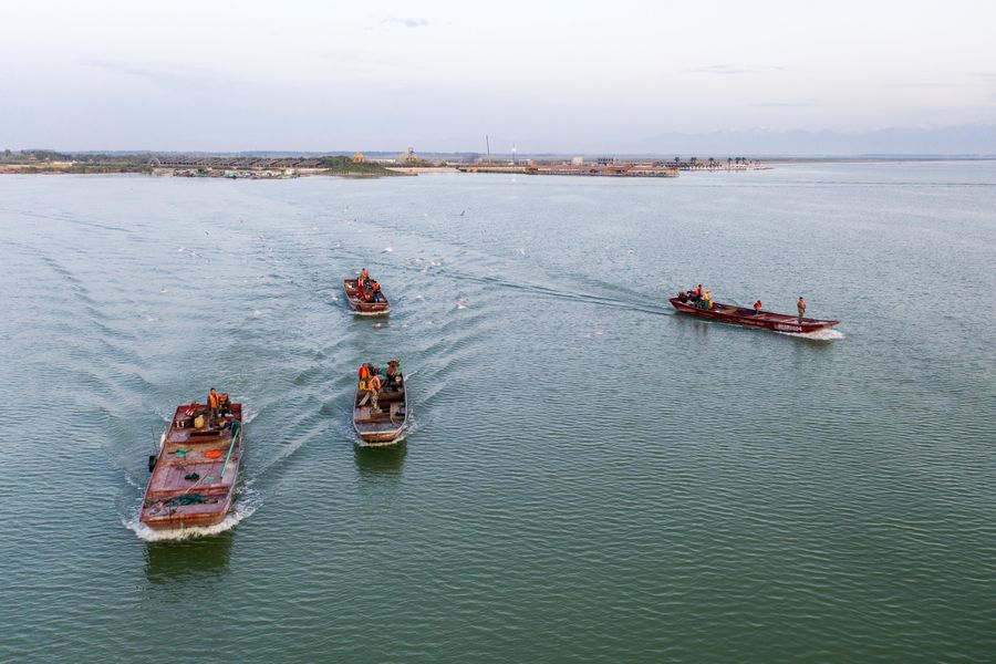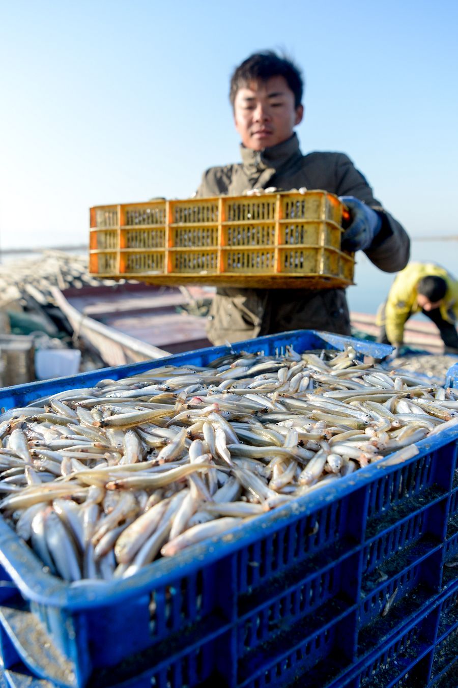 Fishermen of NW China's Xinjiang harvest pond smelt fish on Bosten Lake, which is China's largest inland freshwater lake.