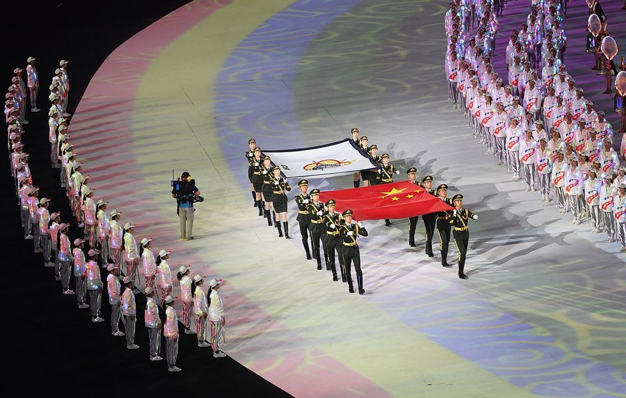 In a stadium that seated nearly 60,000 spectators in the Wuhan Sports Center, the opening ceremony started with the parade of 109 delegations amid huge cheers. The biggest roar from the crowd was reserved for the 553-strong Chinese team, led out by flag bearer and retired professional basketball player Wang Zhizhi.