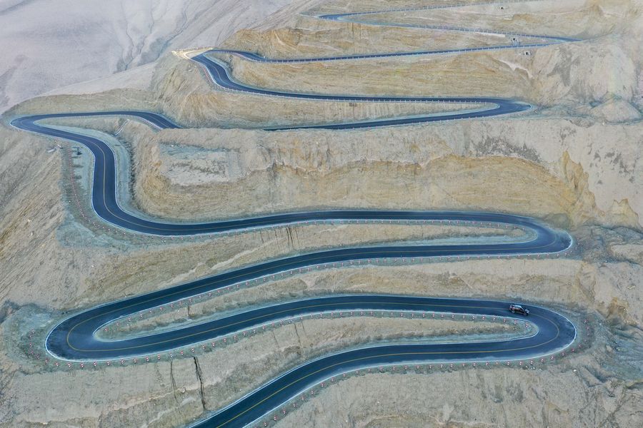A mountain road in Tajik Autonomous County of Taxkorgan, northwest China's Xinjiang Uygur Autonomous Region, Oct. 20, 2019. (Xinhua/Ding Lei)