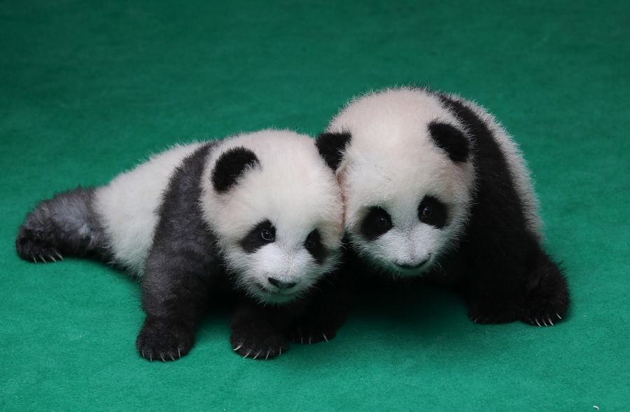 Photo taken on Sept. 24, 2019 shows giant panda cubs at Chengdu Research Base of Giant Panda Breeding in Chengdu, capital of southwest China's Sichuan Province. (Xinhua/Jiang Hongjing)