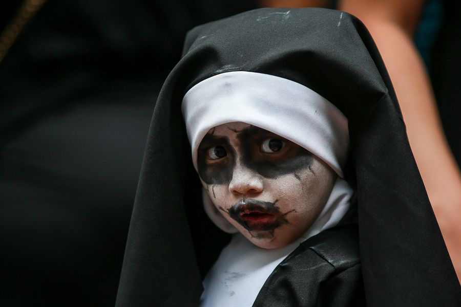 A girl dressed in Halloween costume takes part in the "Petrified" Halloween celebration in Quezon City, the Philippines, Oct. 27, 2019. (Xinhua/Rouelle Umali)