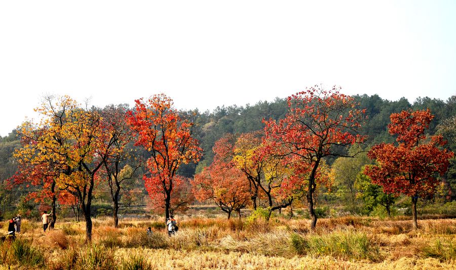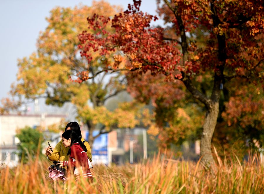 Tourists enjoy the autumn scenery at the foot of Dabieshan Mountain, Nov. 3, 2019. (Photo by Hao Yuan/Xinhua)