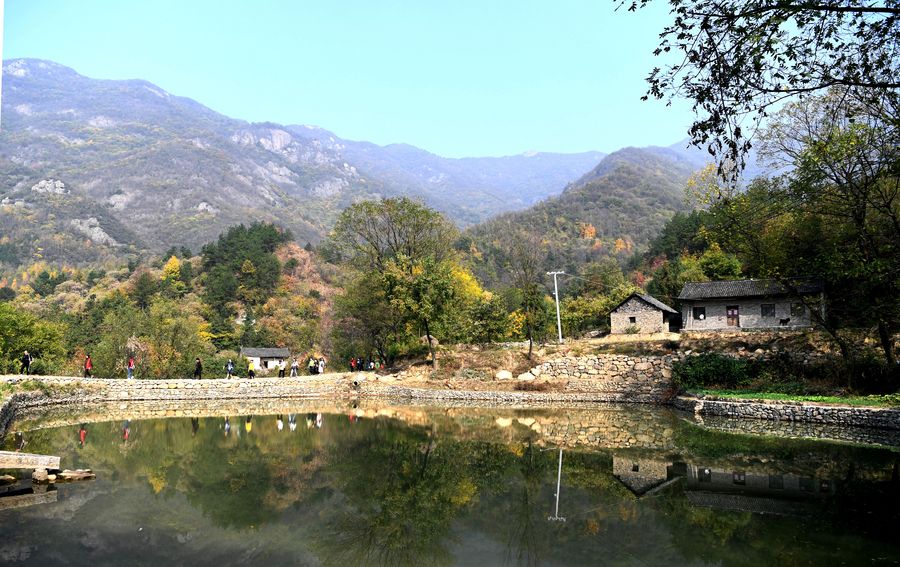 Autumn colors spread through village in Dabieshan Mountain region in central China