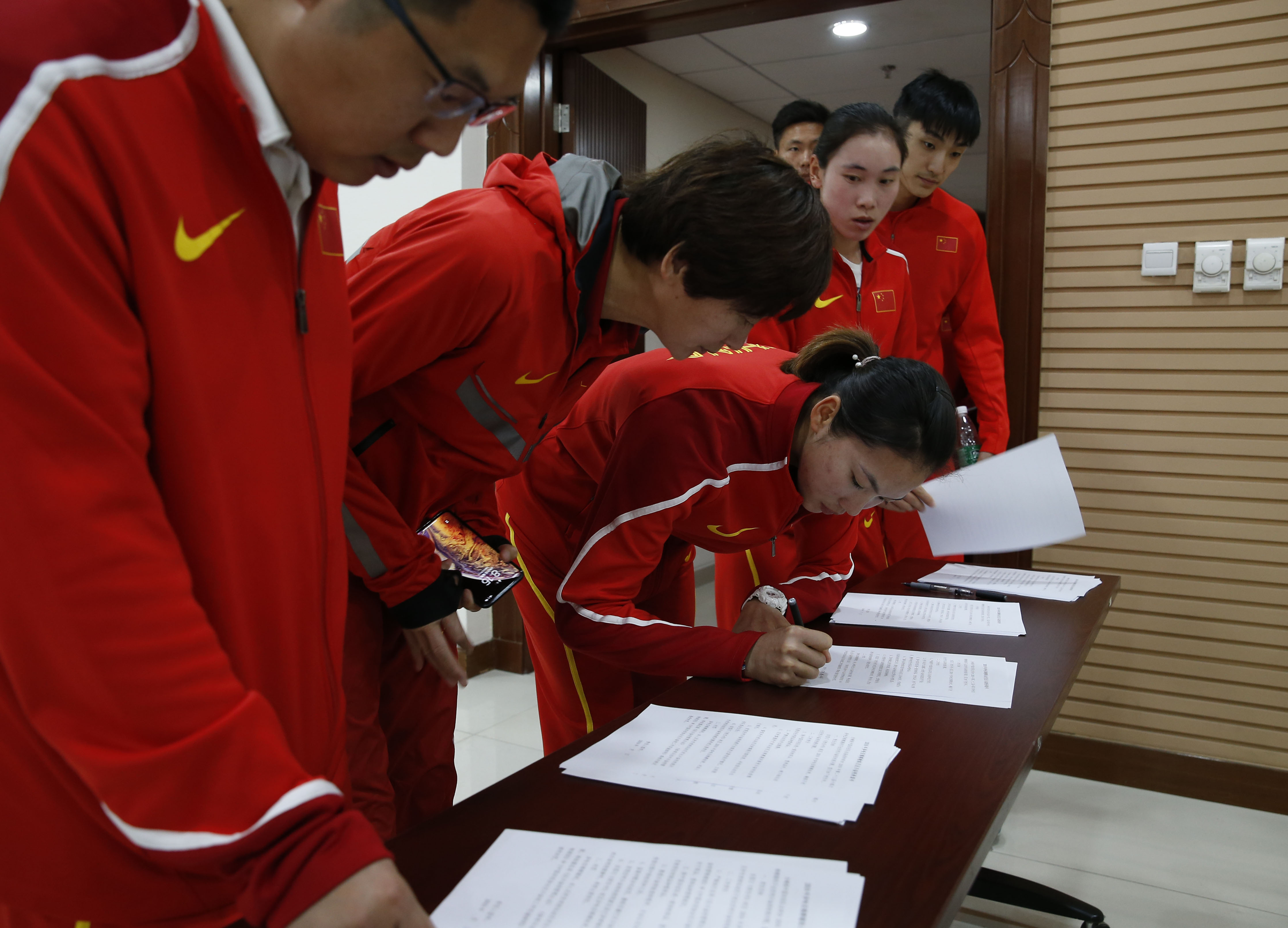 Chinese athletes are signing agreements against doping. (Xinhua/Ding Xu)