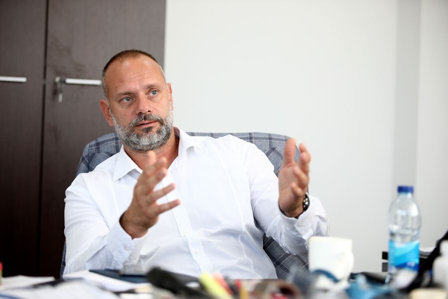 Aleksandar Milic, technical director of Stanari Thermal Power Plant, is interviewed by Xinhua in Stanari, northern Bosnia and Herzegovina (BiH), Oct. 23, 2019. (Photo by Nedim Grabovica/Xinhua)