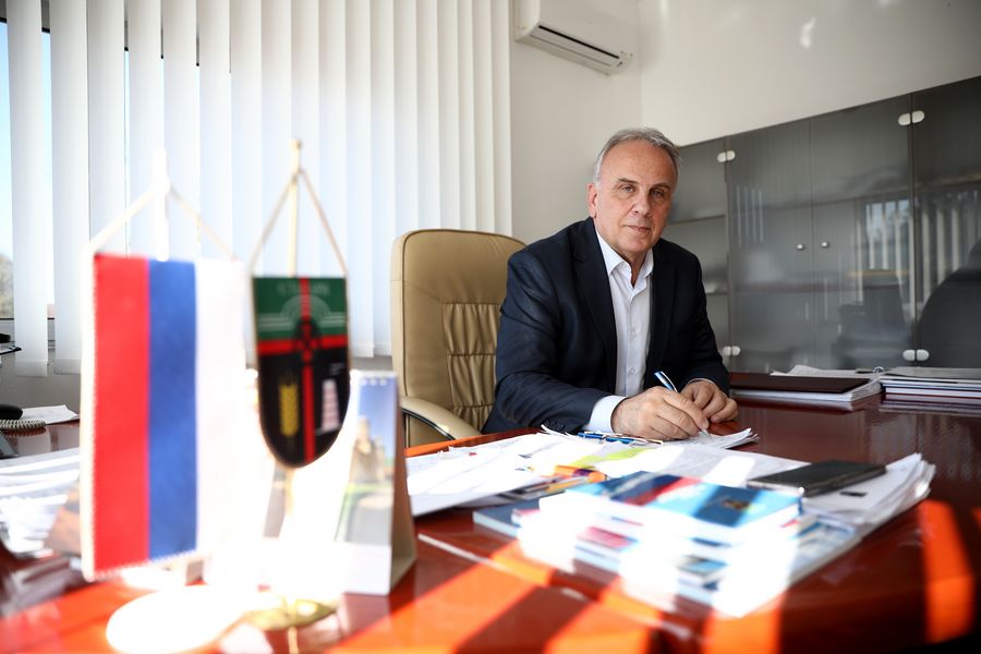 Dusan Panic, mayor of Stanari municipality, is interviewed by Xinhua in Stanari, northern Bosnia and Herzegovina (BiH), Oct. 24, 2019. (Photo by Nedim Grabovica/Xinhua)