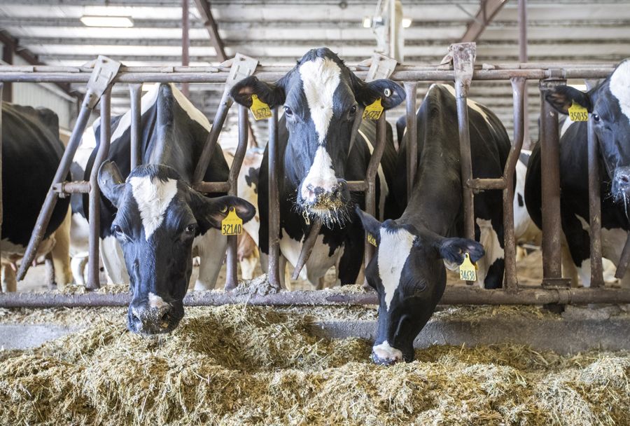 Cows eat grass at a dairy farm run by Kelly D. Cunningham in rural Cass County of the U.S. state of Iowa, Oct. 16, 2019. (Xinhua/Wang Ying)