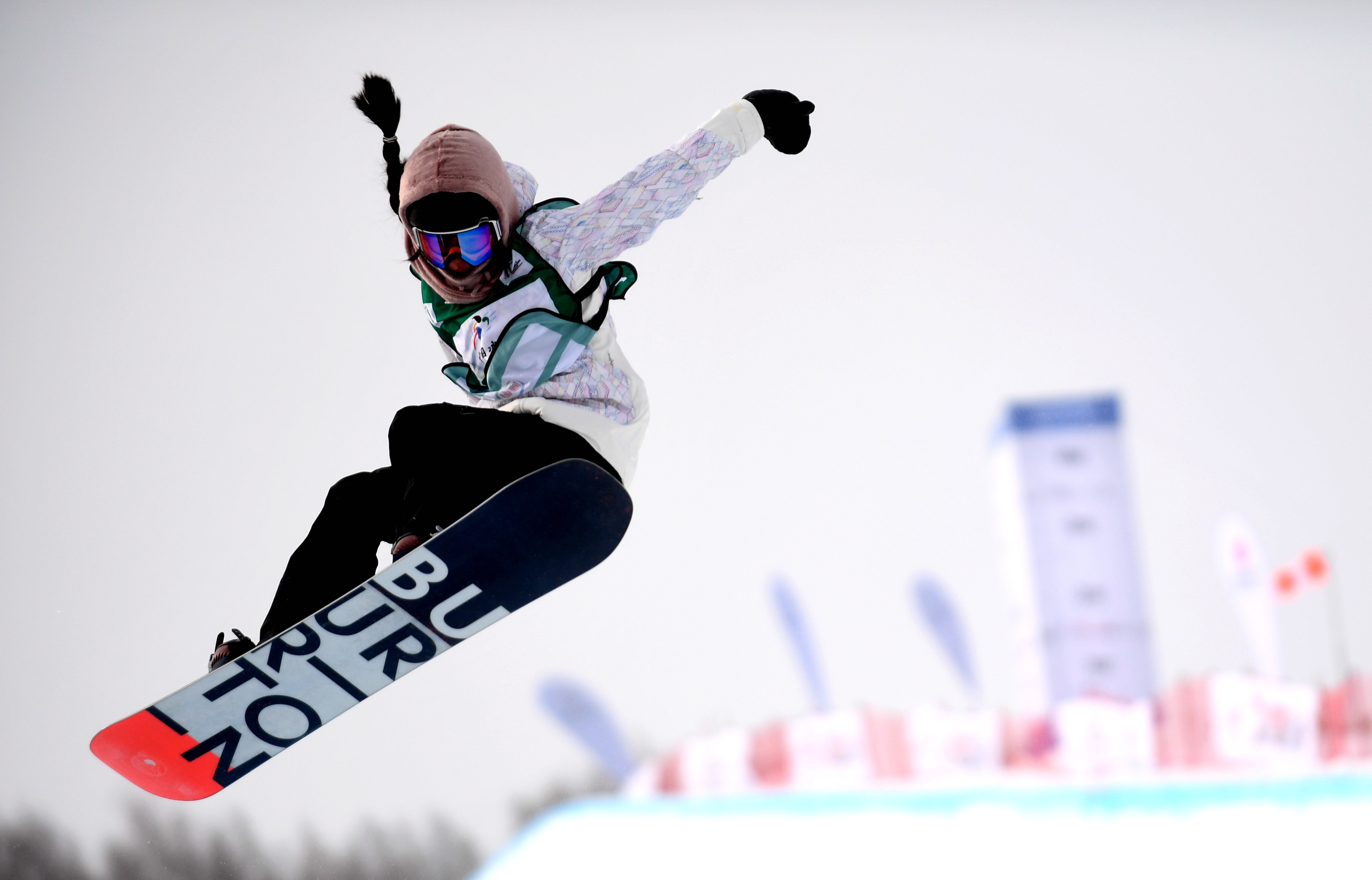 China's Liu Jiayu competes during the Women's Snowboard Halfpipe qualification at FIS Snowboard World Cup 2020 in Chongli, north China's Hebei Province, on Dec. 20, 2019. (Xinhua/Wang Xiao)