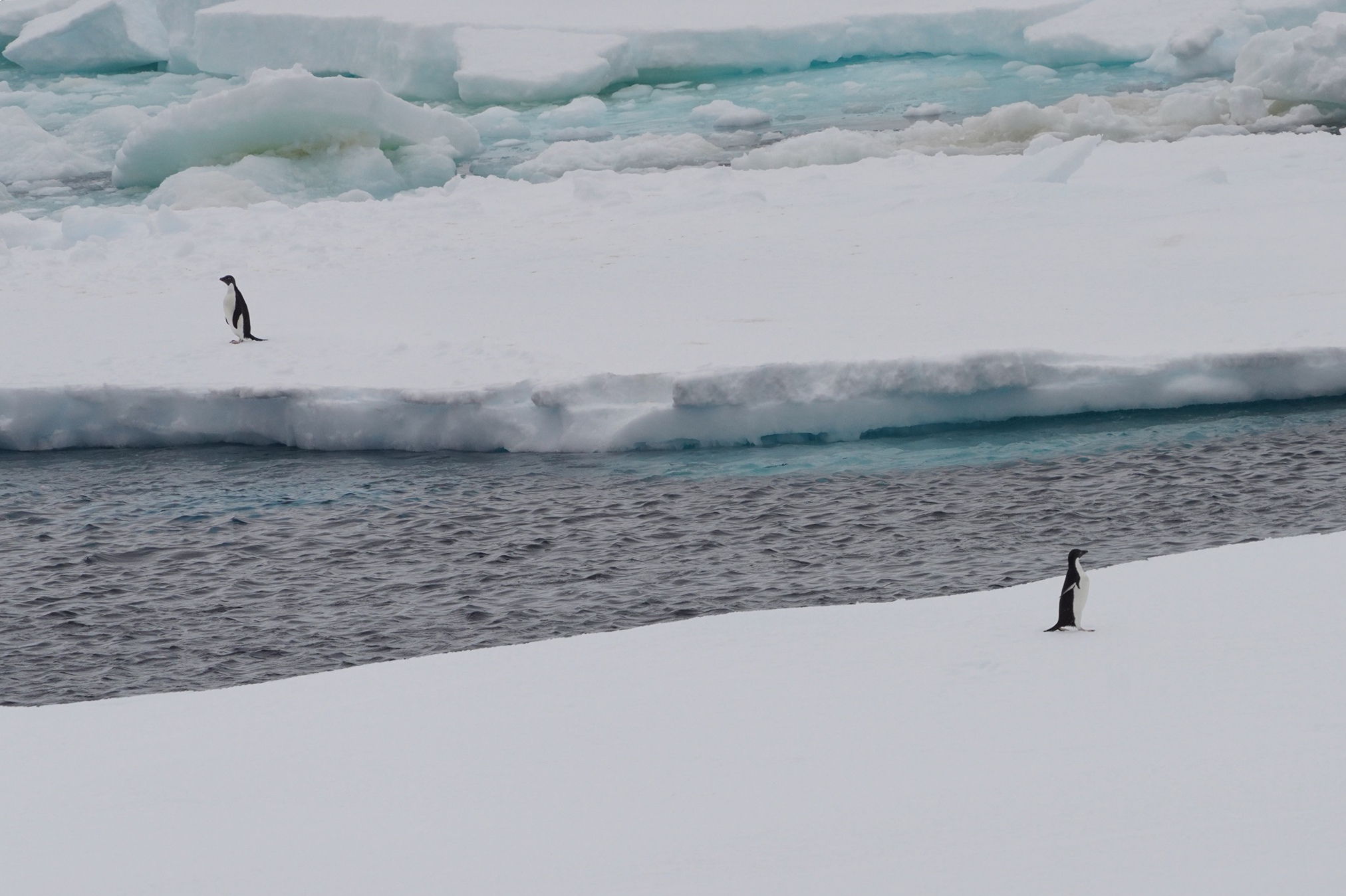 Penguins are seen on floating ice near China's polar icebreaker Xuelong 2, or Snow Dragon 2, in the Southern Ocean on Dec. 19, 2019. (Xinhua/Liu Shiping)