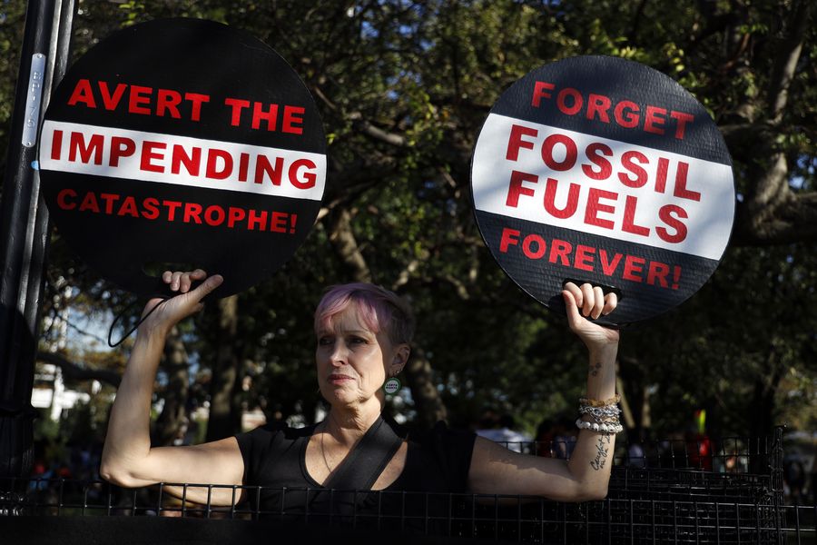 A woman participates in a strike to call attention to climate change in New York, the United States, on Sept. 20, 2019. (Xinhua/Li Muzi)