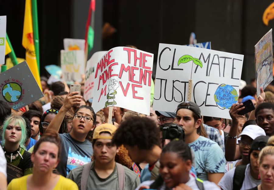 People participate in a strike to call attention to climate change in Chicago, the United States, on Sept. 20, 2019. (Xinhua/Wang Ping)