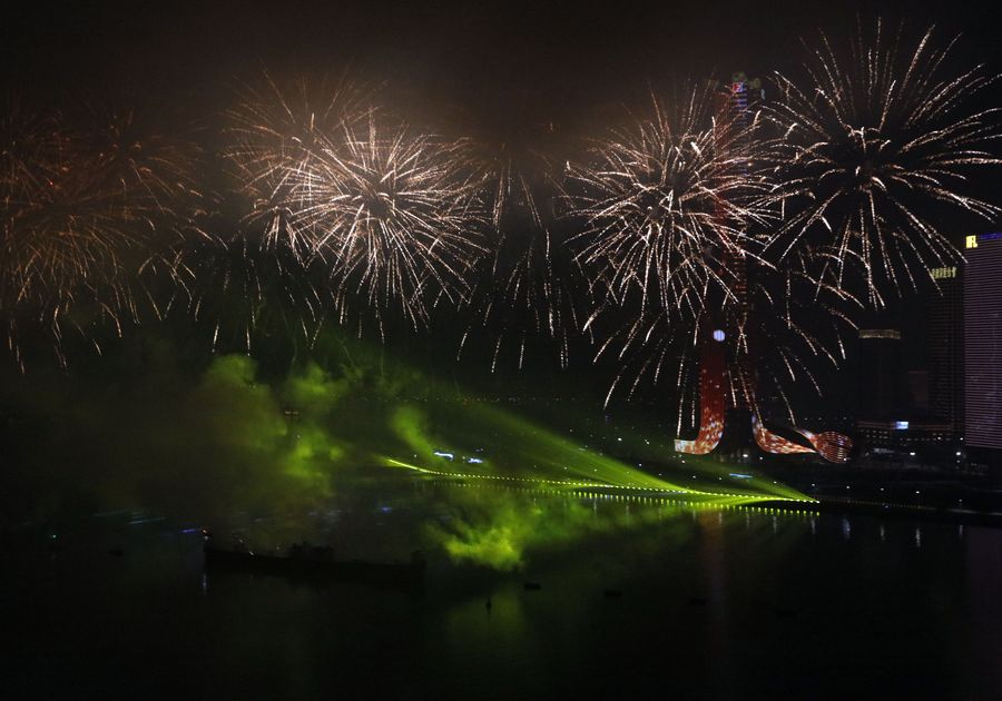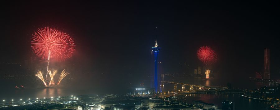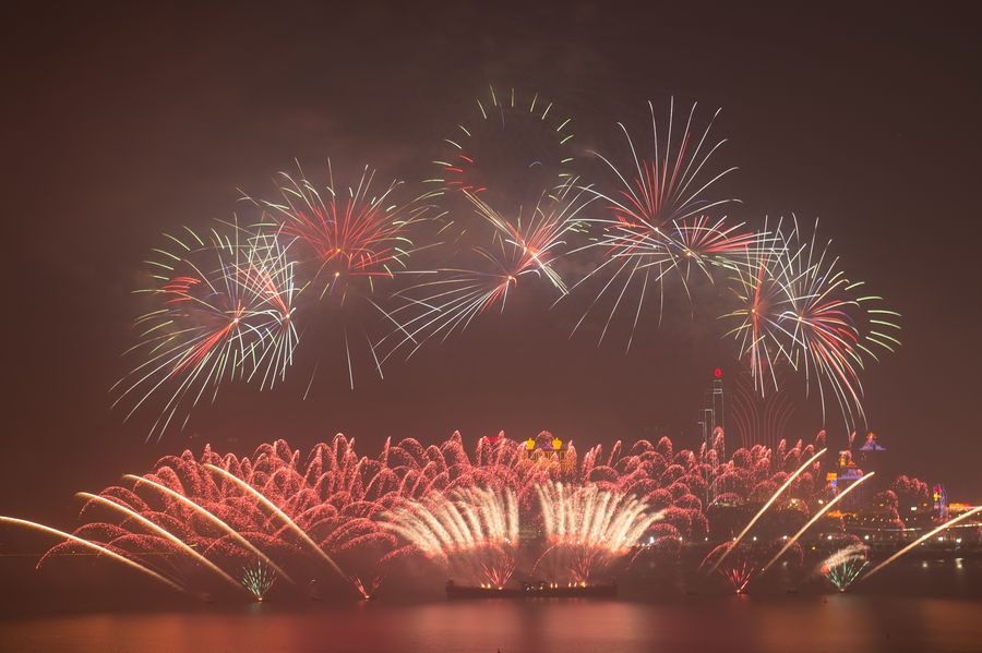 Splendid night: Fireworks explode over the sky of Macao and Zhuhai