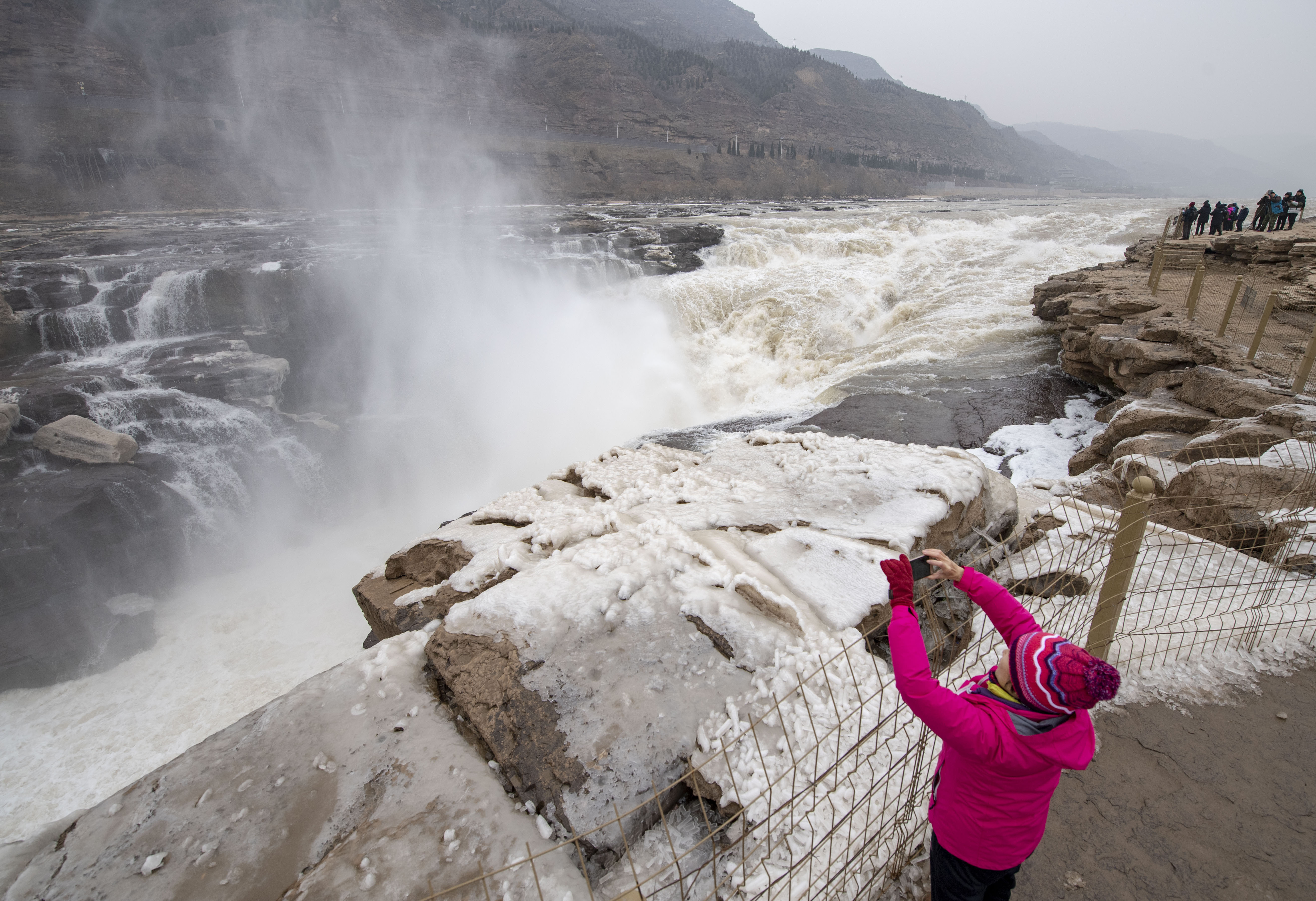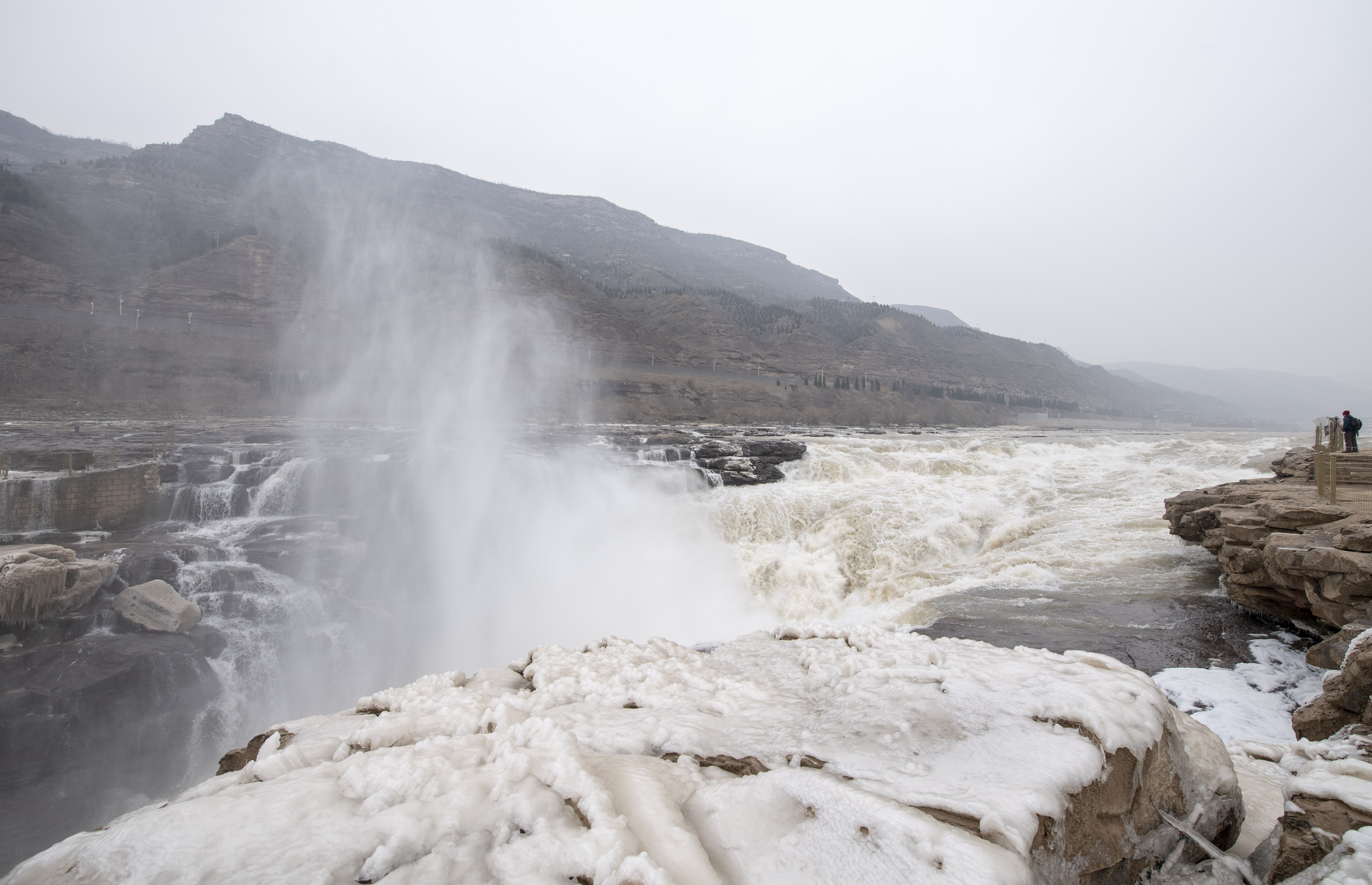 Winter spectacle:Enjoy the view of the Hukou Waterfall, China's second-largest waterfall,from different angles.