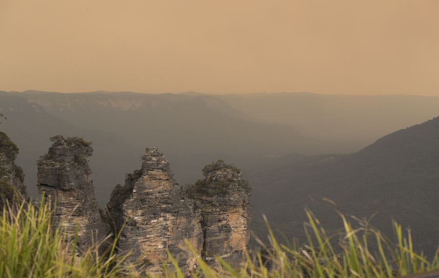 Photo taken on Dec. 21, 2019 shows the smoke-shrouded Blue Mountain area in New South Wales, Australia. (Xinhua/Bai Xuefei)