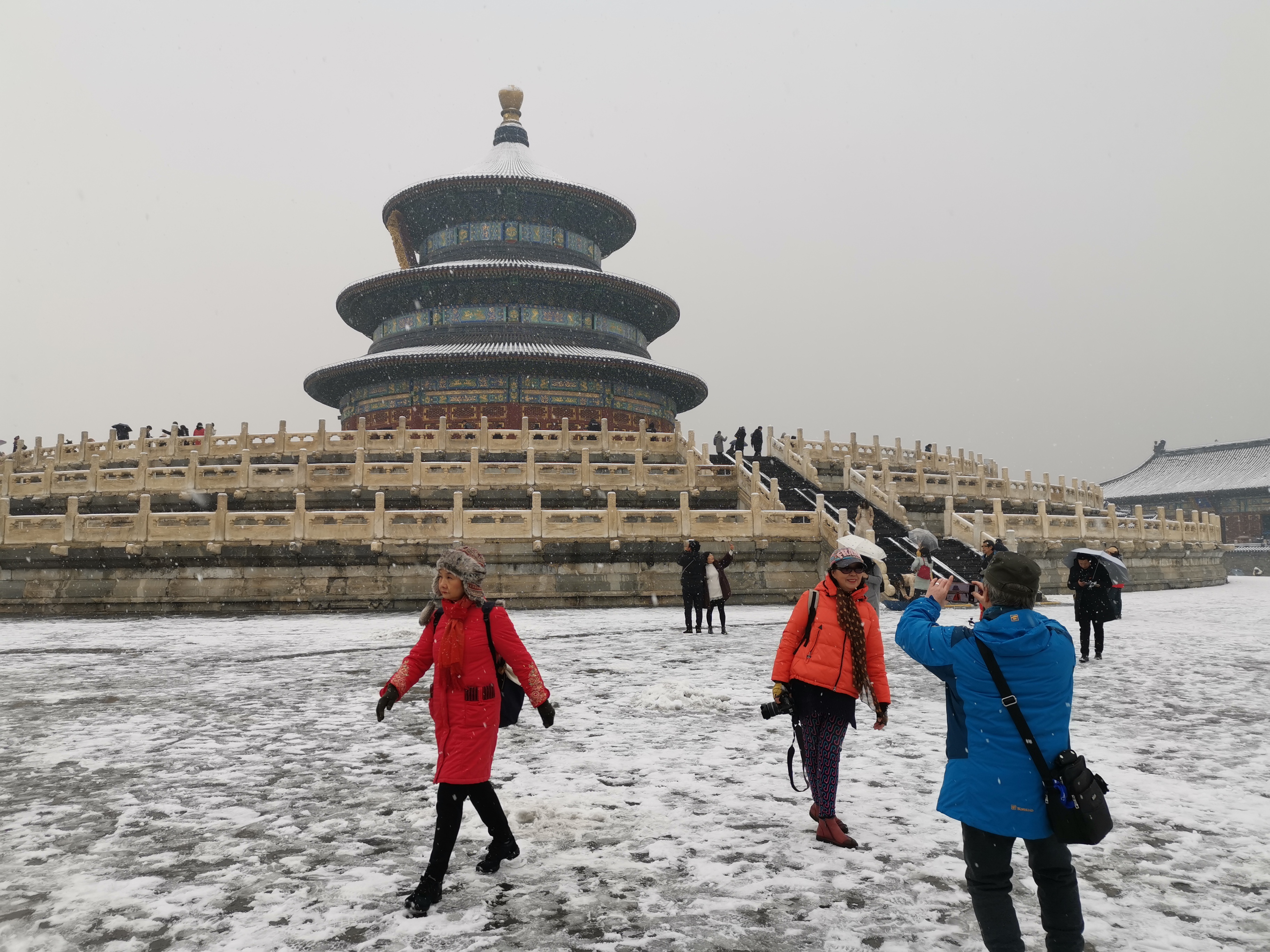 Mobile photo shows people visiting the Temple of Heaven after snow in Beijing, capital of China, Dec.16, 2019. (Xinhua/Jiang Shengxiong)