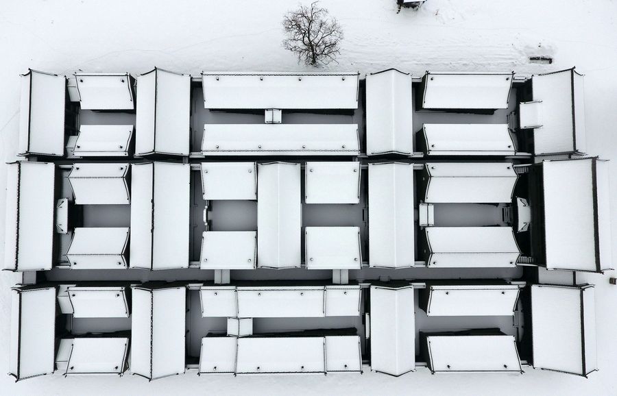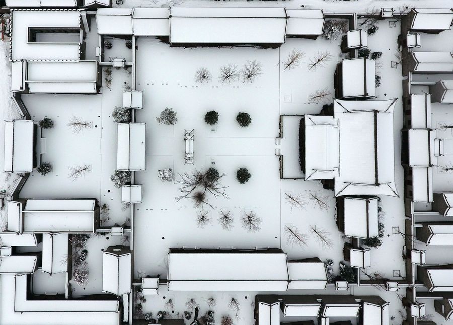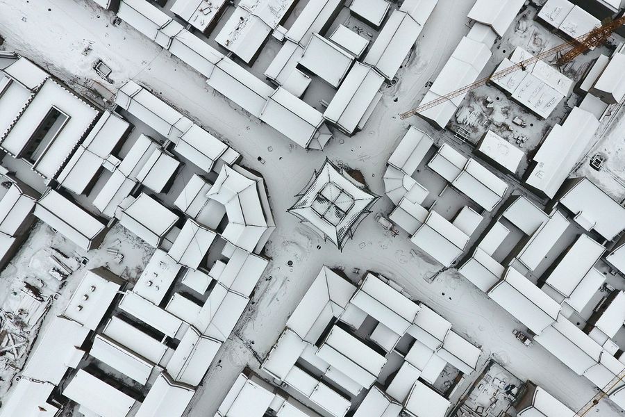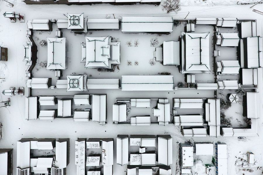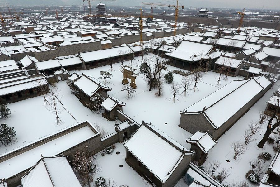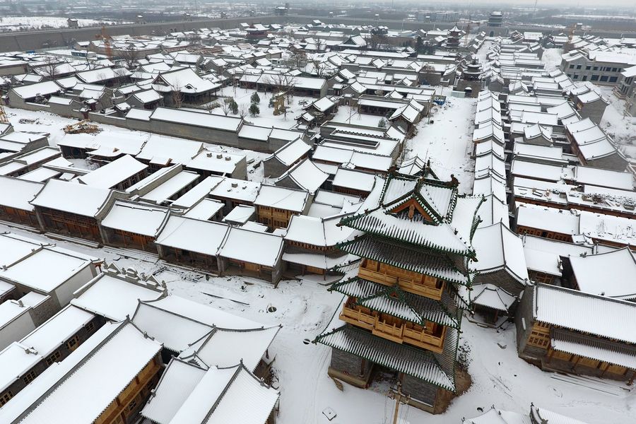 Aerial photo taken on Jan. 7, 2020 shows the snow scenery of the Taiyuan Ancient County in Taiyuan City, capital of north China's Shanxi Province.(Xinhua/Cao Yang)
