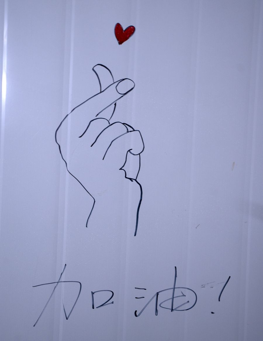 Doctor Wang Wei from Dalian drew a picture of the Dalian Railway Station and Wuhan Yellow Crane Tower. "They symbolize the 'heart-to-heart' solidarity between Dalian and Wuhan people."