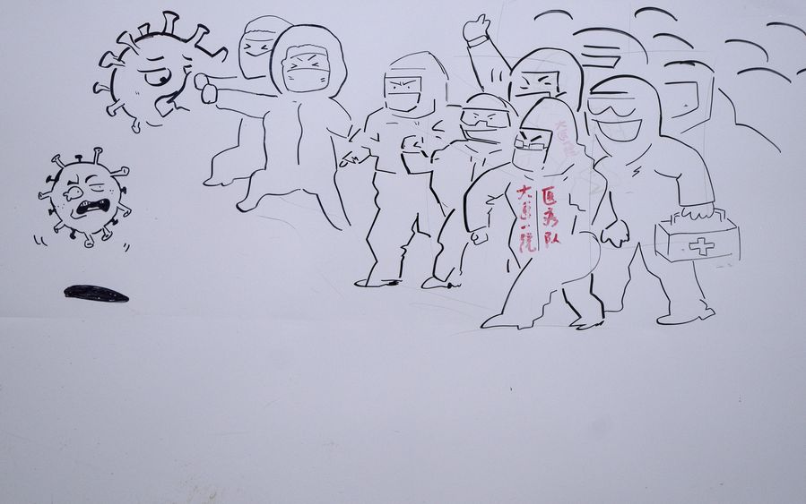 Medics draw cartoons on ward wall to cheer up COVID-19 patients in China