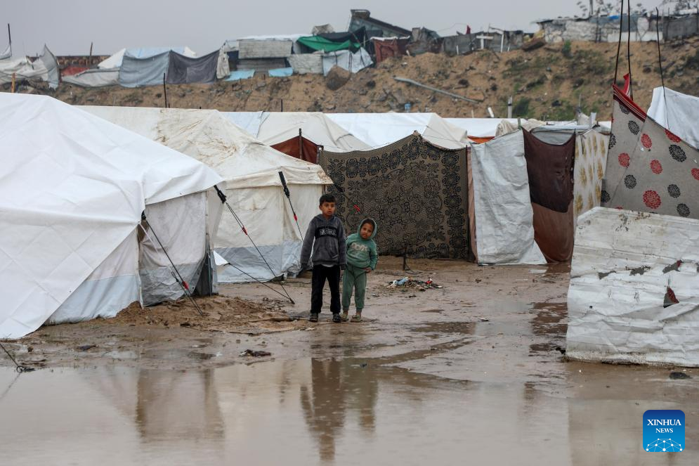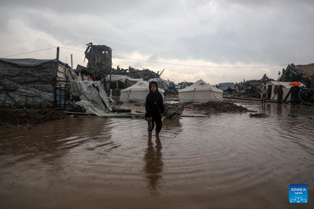 UNITED NATIONS, Dec. 10 (Xinhua) -- Heavy winter rains and high winds are pounding flimsy temporary shelters of tents and tarps in the Gaza Strip, putting more vulnerable people at risk, UN humanitarians said on Wednesday.