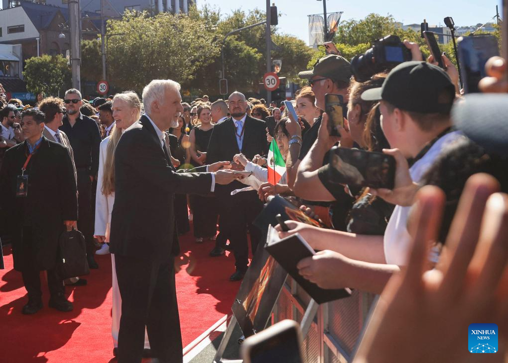 James Cameron (L, front), director of the film "Avatar: Fire and Ash", attends the New Zealand premiere of the film in Wellington, New Zealand, Dec. 13, 2025. The premiere was held here on Saturday, with the participation of director James Cameron and the film's cast. (Photo by Meng Tao/Xinhua)