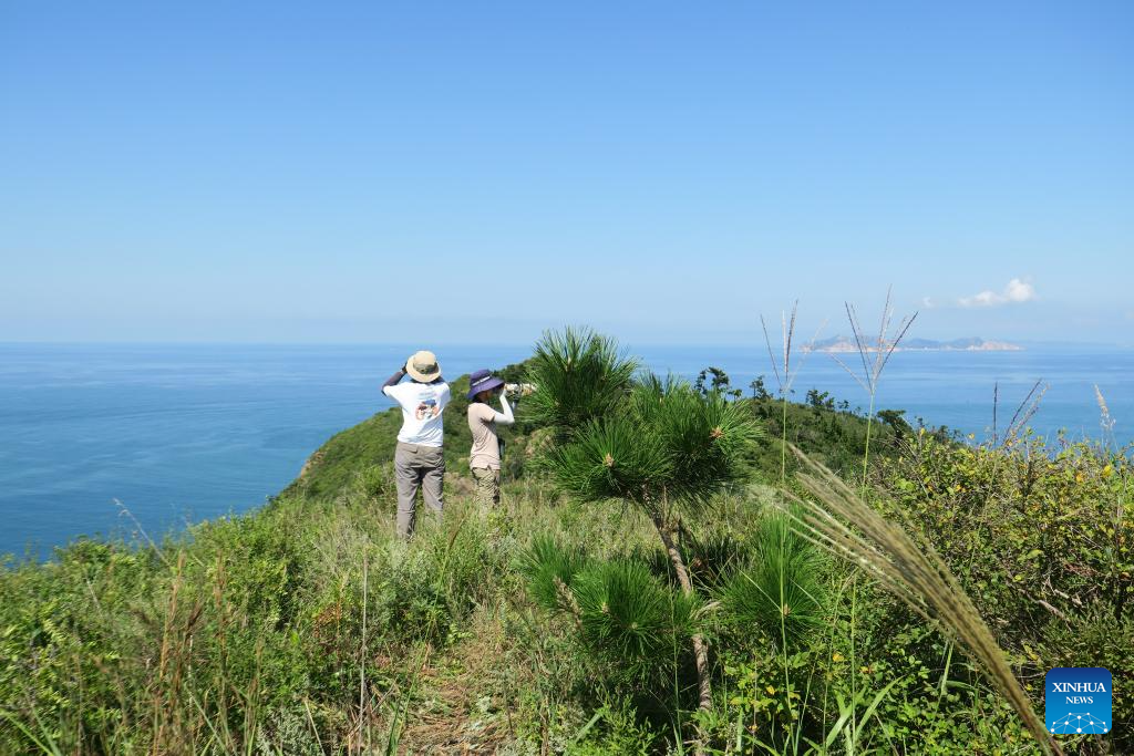 Birdwatching volunteers conduct observation on Tuoji islet, a part of Changdao National Nature Reserve in the city of Yantai, east China's Shandong Province, Sept. 13, 2025. (Qingdao Birdwatching Association/Handout via Xinhua)