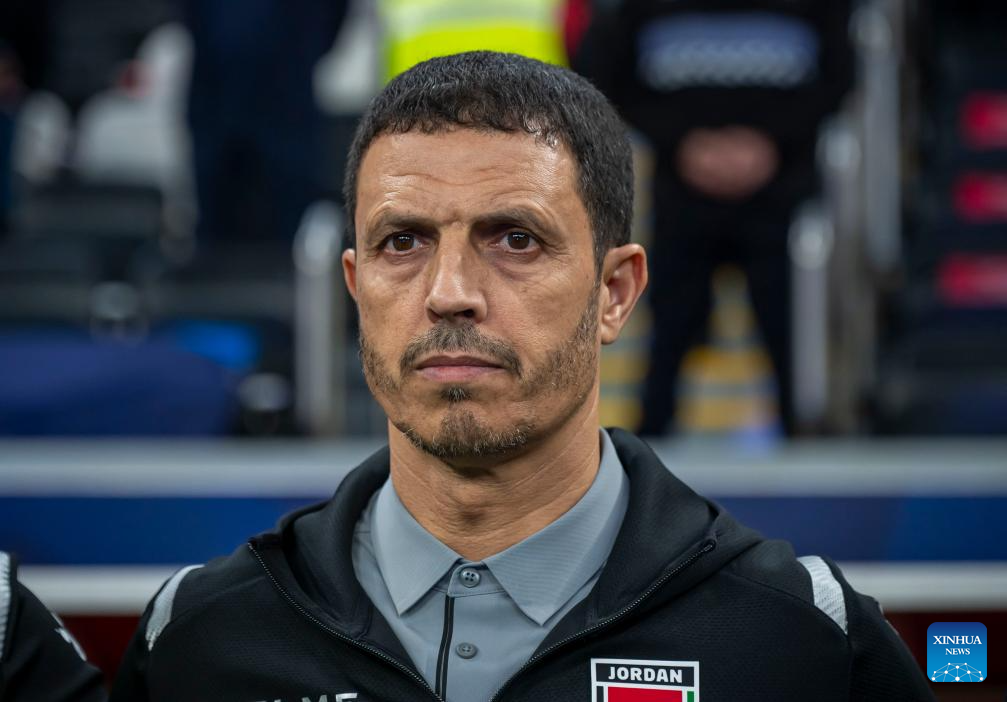 Sellami Jamal, head coach of Jordan, looks on prior to the FIFA Arab Cup 2025 Semi-final match between Saudi Arabia and Jordan at Al Bayt Stadium in Al Khor, Qatar, on Dec. 15, 2025. (Photo by Nikku/Xinhua)