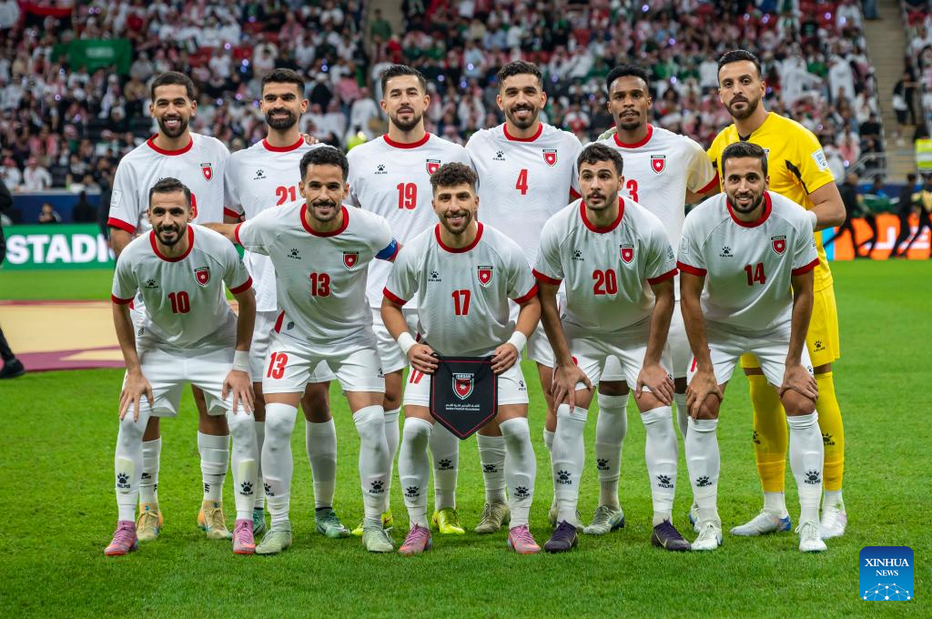 Players of Jordan pose for a group photo prior to the FIFA Arab Cup 2025 Semi-final match between Saudi Arabia and Jordan at Al Bayt Stadium in Al Khor, Qatar, on Dec. 15, 2025. (Photo by Nikku/Xinhua)