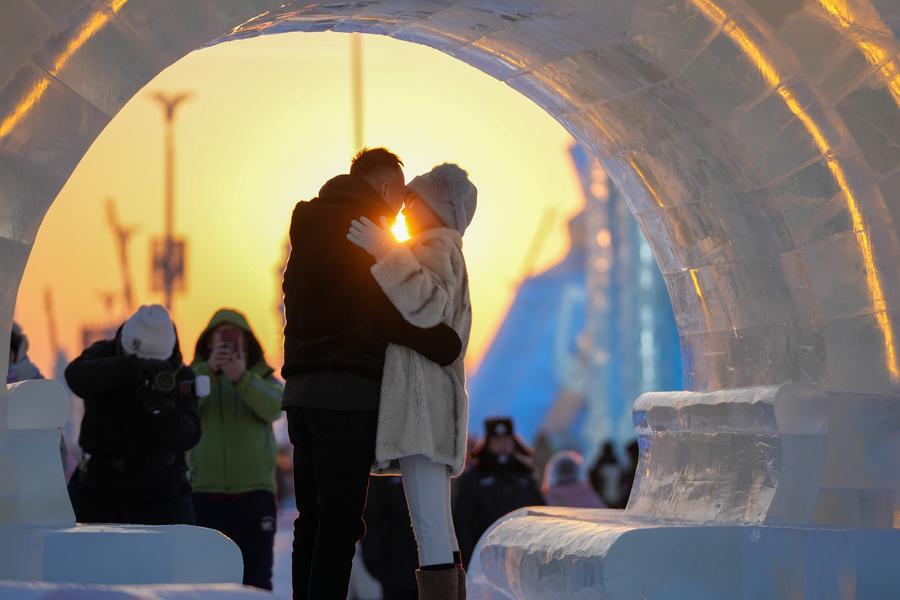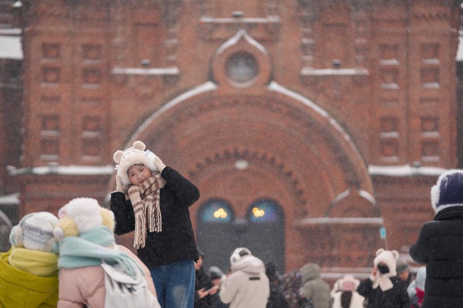 Tourists have fun at a square in Harbin, northeast China's Heilongjiang Province, Dec. 23, 2025. (Xinhua/Wang Jianwei)