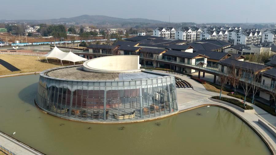 An aerial drone photo taken on Dec. 25, 2025 shows a view of an education center of the Lingjiatan relics site in Hanshan County, Ma'anshan, east China's Anhui Province. (Xinhua/Huang Bohan)