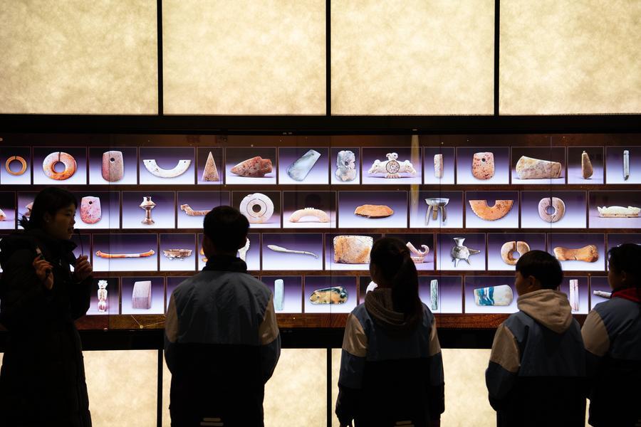 Students visit the Lingjiatan Site Museum in Hanshan County, Ma'anshan, east China's Anhui Province, on Jan. 13, 2026.  (Xinhua/Zhang Duan)