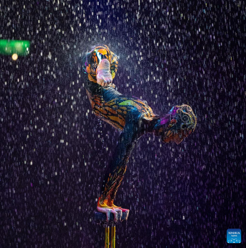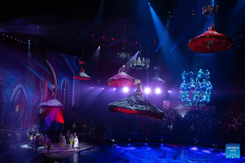House of Dancing Water, an aquatic stage production featuring aerial acrobatics and theater technology, is staged in Macao, south China, May 7, 2025.(Xinhua/Cheong Kam Ka)