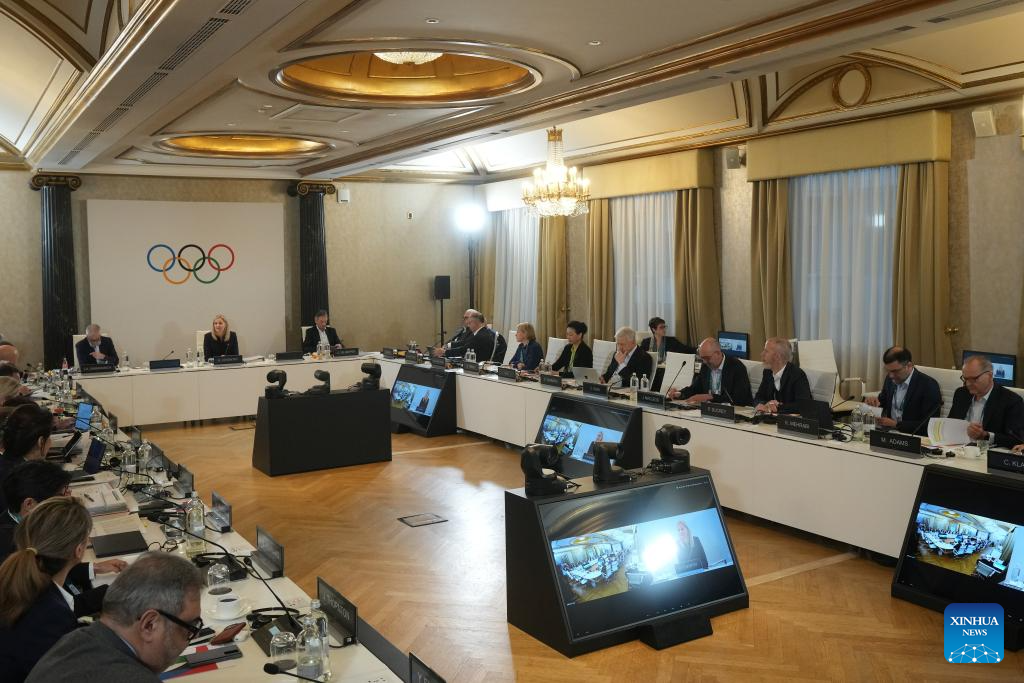 Kirsty Coventry (top C), president of International Olympic Committee (IOC), attends the IOC Executive Board meeting before the 2026 Winter Olympics in Milan, Italy, Jan. 31, 2026. (Antonio Calanni/Pool via Xinhua)