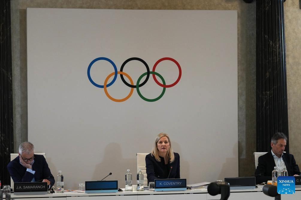 Kirsty Coventry (C), president of International Olympic Committee (IOC), attends the IOC Executive Board meeting before the 2026 Winter Olympics in Milan, Italy, Jan. 31, 2026. (Antonio Calanni/Pool via Xinhua)