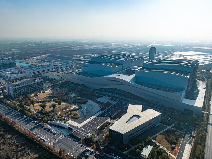 An aerial drone photo taken on Jan. 14, 2026 shows an exterior view of Hangzhou Linjiang Environmental Energy Co., Ltd. in Hangzhou, east China's Zhejiang Province. (Xinhua/Jiang Han)