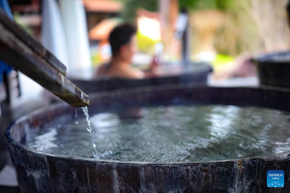 A tourist enjoys leisure time at a hot spring resort in Shiqian County, southwest China's Guizhou Province, Jan. 27, 2026. By integrating its rich hot spring resources with tourism, healthcare, and intangible cultural heritage, Shiqian county has boosted local tourism and created employment opportunities, making it an important driving force of rural revitalization. (Xinhua/Liu Xu)