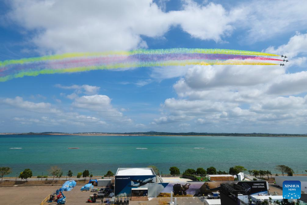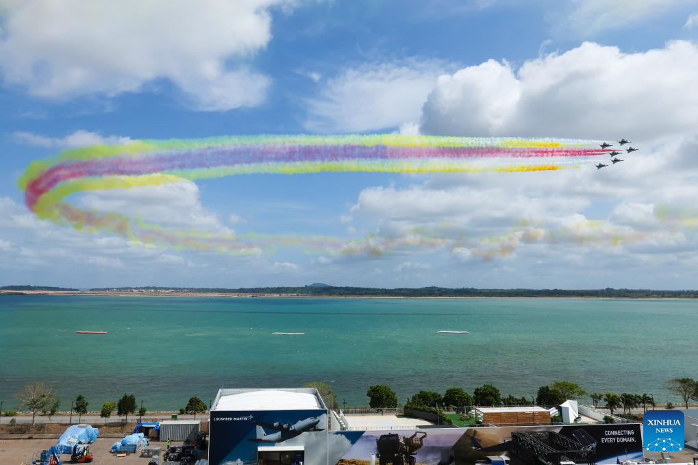 Aircraft of the Bayi Aerobatic Team of the Chinese People's Liberation Army (PLA) Air Force conduct training exercises for the 10th Singapore Airshow over the sea near Singapore's Changi Airport in Singapore, Jan. 30, 2026. (Photo by Zhu Jianghai/Xinhua)