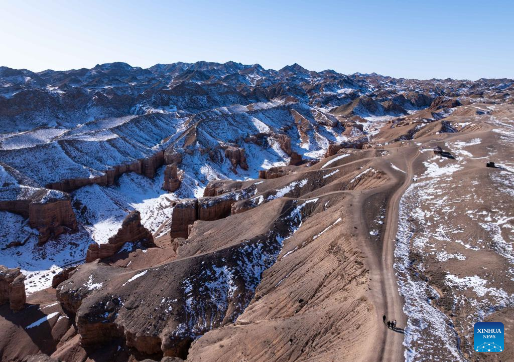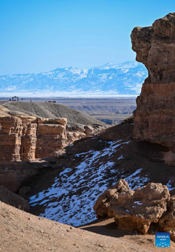 People visit the Charyn Canyon in Almaty Region, Kazakhstan, Jan. 30, 2026. (Xinhua/Li Renzi)