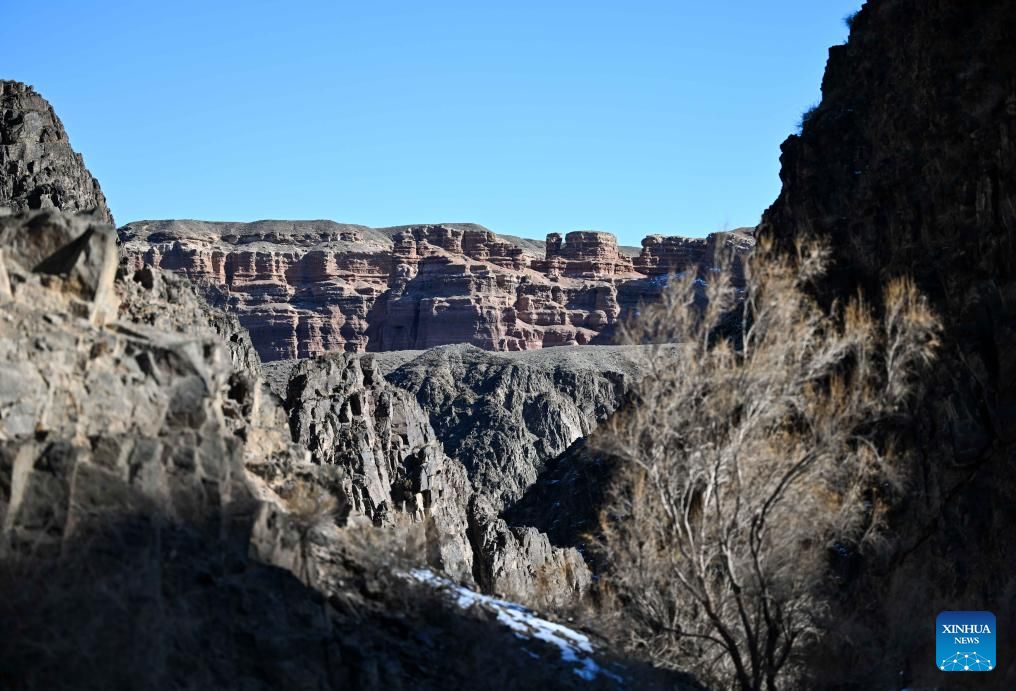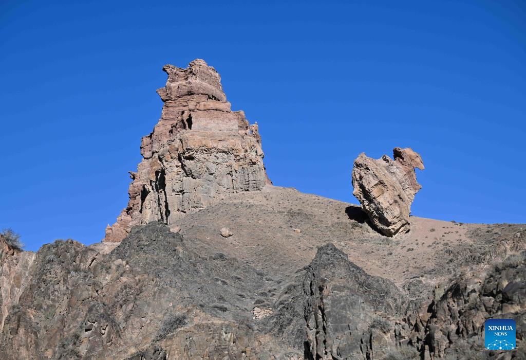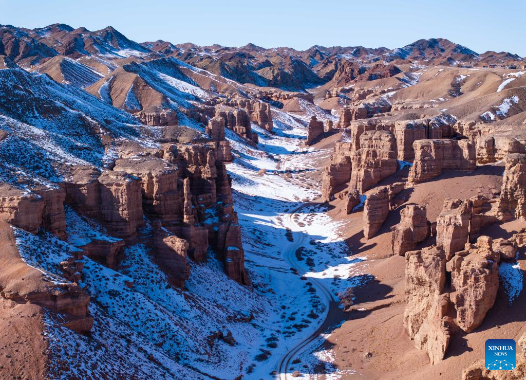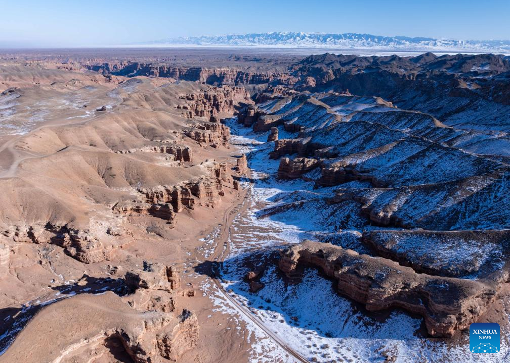 Photo taken on Jan. 30, 2026 shows the scenery of the Charyn Canyon in Almaty Region, Kazakhstan. (Xinhua/Li Renzi)