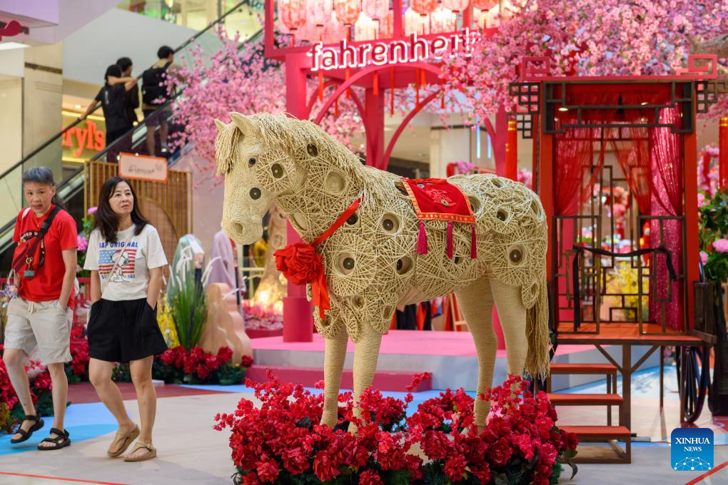 Horse-themed installations and decorations have recently been set up to mark the upcoming Chinese New Year in major shopping malls across Malaysia. (Photo by Chong Voon Chung/Xinhua)