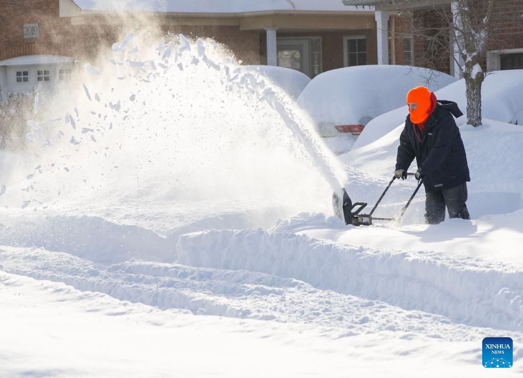 A man clears snow in Oakville, the Greater Toronto Area, Canada, Jan. 26, 2026. (Photo by Zou Zheng/Xinhua)