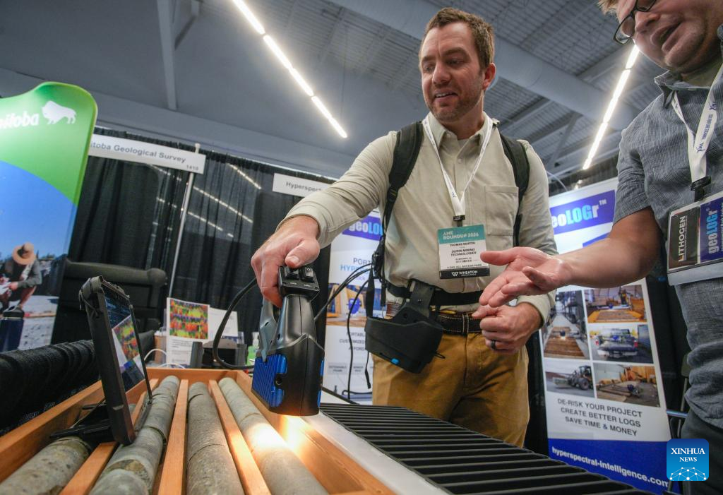 An attendee tests a rock analyzer during the Association for Mineral Exploration (AME) Roundup 2026 at the Vancouver Convention Centre in Vancouver, British Columbia, Canada, on Jan. 26, 2026. The AME Roundup 2026 kicked off here on Monday, featuring a four-day exhibition with exhibitors from around the world showcasing products, technologies and services related to mineral exploration and development. The event runs from Jan. 26 to Jan. 29. (Photo by Liang Sen/Xinhua)