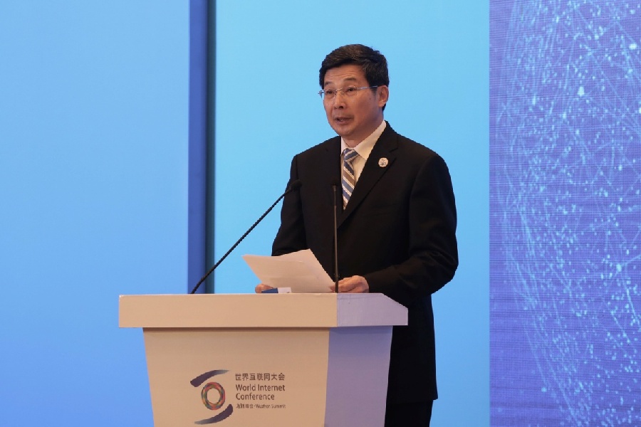 Zhuang Rongwen, minister of Cyberspace Administration of China, delivers a speech at a ministerial forum themed "Bridging the Digital Divide" in Wuzhen, East China’s Zhejiang province on Nov 8, which serves as a sub-forum of the fifth World Internet Conference. (Photo by Xu Jingxing/chinadaily.com.cn)