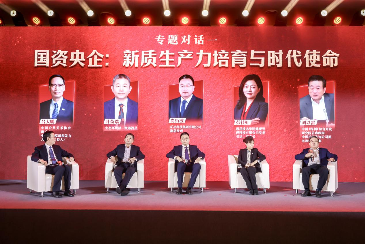在“国资央企:新质生产力培育与时代使命”专题对话中,生态环境部一级巡视员叶荷瑞,矿冶科技集团有限公司副总经理尚衍波,通用技术集团健康管理科技有限公司党委书记、董事长彭佳虹,中国(深圳)综合开发研究院首席顾问刘以雷,中国公共关系协会副会长吕大鹏围绕绿色发展转化、产业转型升级、健康服务普惠、企业治理优化等核心议题作了分享。