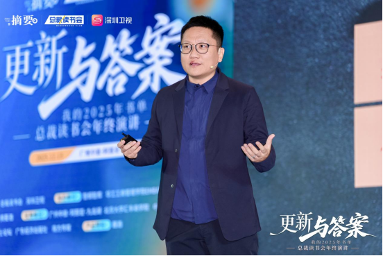 下午举行的“更新与答案:我的2025年书单”总裁读书会年终演讲,在宁高宁致辞之后,循着“读书、读人、读世界”三个篇章的认知阶梯,共有六位领读人一同拨开迷雾、探寻真谛。从生命支点的精神求索,到破壁认知的思维革新;从生命科学的本质解码,到时代美学的情感共鸣;再到社区营造的实践智慧,每一段分享都是一次跨越认知的碰撞,每一份书单都是一把解锁未来的钥匙。