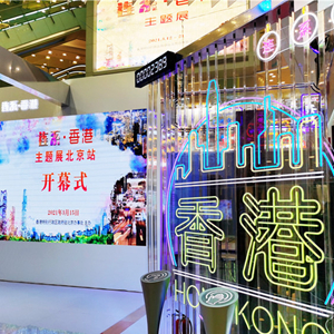 此次主題展展臺外觀通透明亮,內(nèi)部搭配錯落有致的霓虹招牌,還呈現(xiàn)香港古跡和香港街道的場景,讓觀眾身在北京也能感受到香港豐富多元的都巿面貌,體驗濃厚的“港風”。展覽分為六大主題,包括“香港連接內(nèi)地與世界的橋梁功能”“商貿(mào)金融和創(chuàng)新科技”“多元文藝發(fā)展”“薈萃古今中外文化的特色”“綠色城市風光”“京港合作交流”。展臺還設(shè)有兩個互動裝置,以富有趣味的方式讓參觀者“連系”香港,并為香港送上祝福。