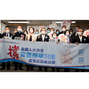 香港工聯會會長吳秋北、香港經民聯主席盧偉國、香港廣東社團總會主席龔俊龍、香港福建社團聯會主席吳換炎等均表示,將堅定支持全國人大完善香港選舉制度的決定,讓“一國兩制”行穩致遠,令香港長治久安。