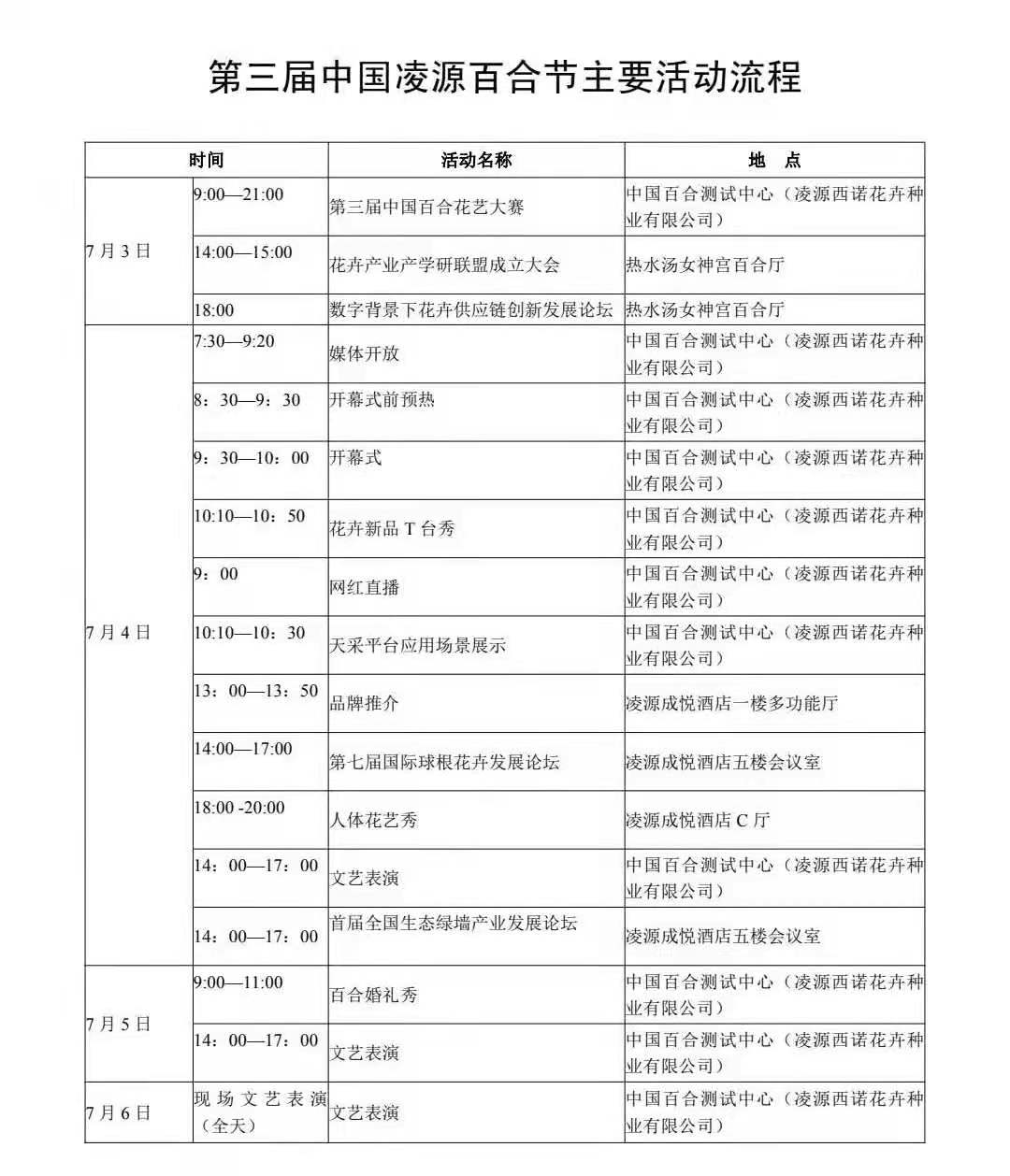 第三屆中國凌源百合節活動安排