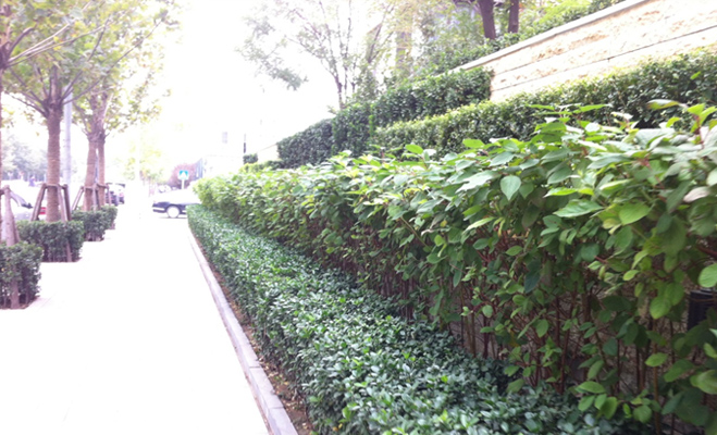富力項目的綠化環境普遍良好,其高端項目富力十號的綠植最多,甚至項目的外圍墻面都有綠色植物的覆蓋。基本上小區內都設有兒童游戲場所和居民休息場所,但富力盛悅居小區北面有一個堆滿廢棄裝修物的垃圾堆,如若不及時處理,會影響到小區的居住品質。
